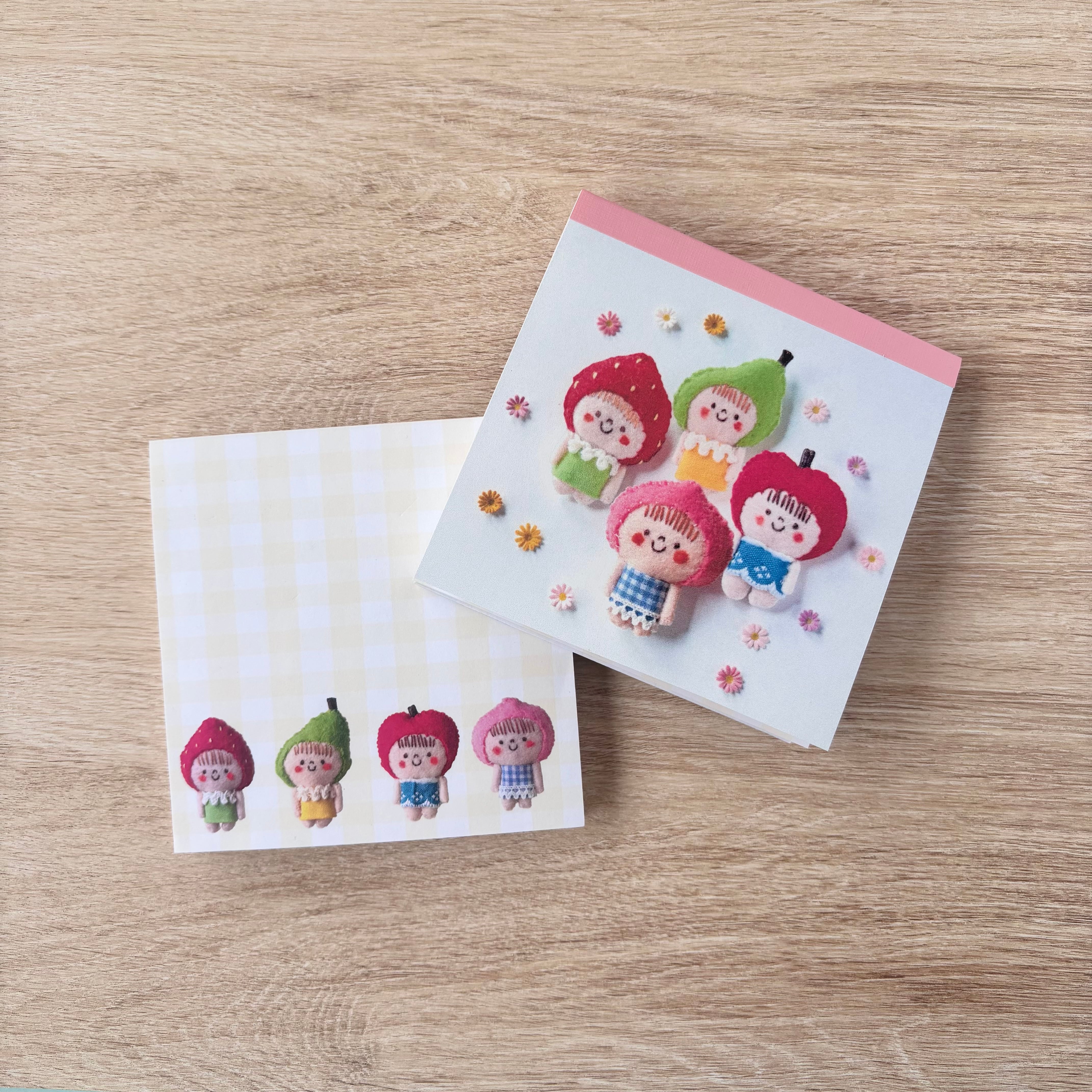 フルーツちゃんのスクエア型のメモ帳です。