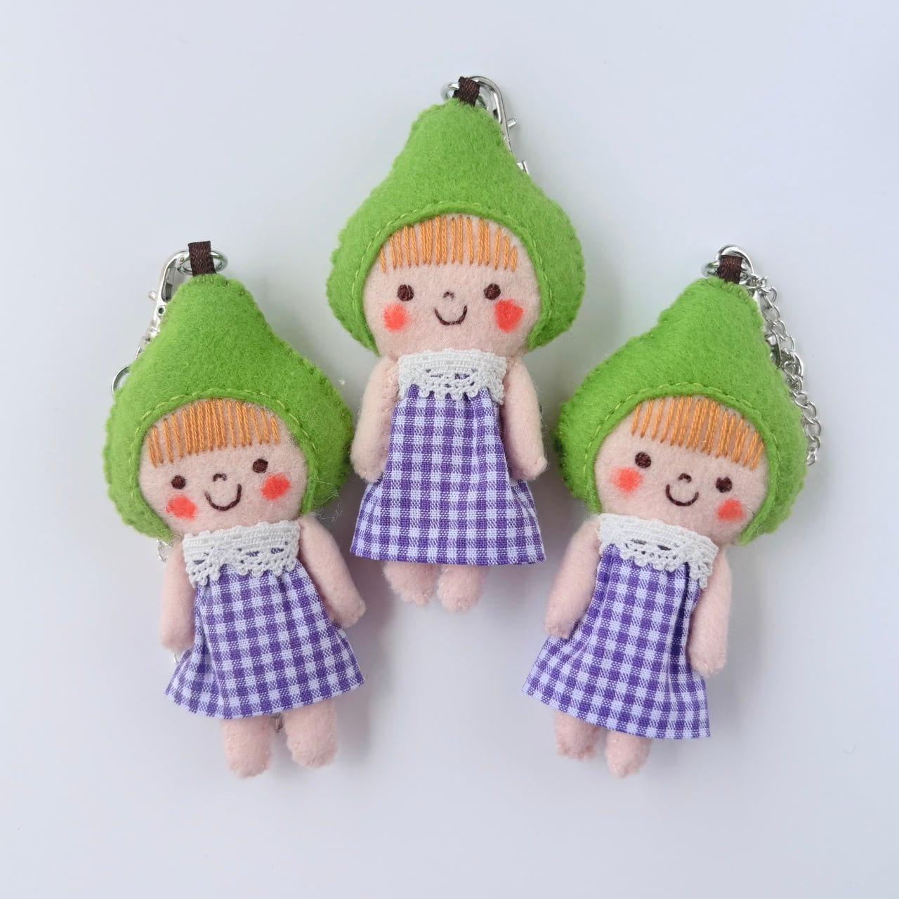フェルトでできた洋梨ちゃんのチャームです。